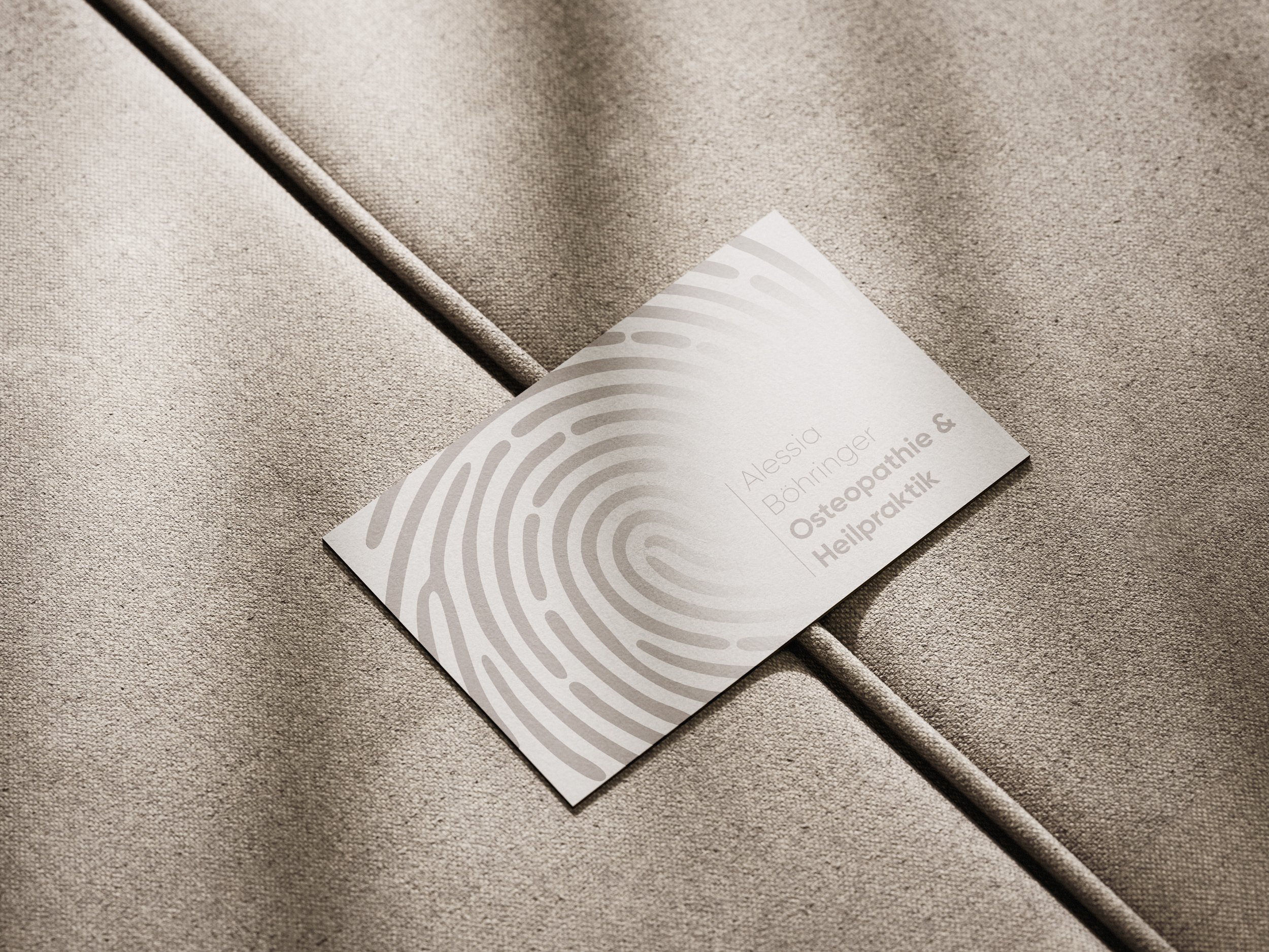 Den therapeutischen Anspruch der Praxis von Alessia zeigt sich in einer klaren, reduzierten Gestaltung, die Ruhe und Vertrauen vermittelt. Eine zeitlose Formsprache, welche einen Fingerabdruck und einen Wirbel verbindet, dezente Farben und eine ausgewogene reduzierte Typografie schaffen eine Atmosphäre, die Professionalität und moderne Heilmethoden vereint.