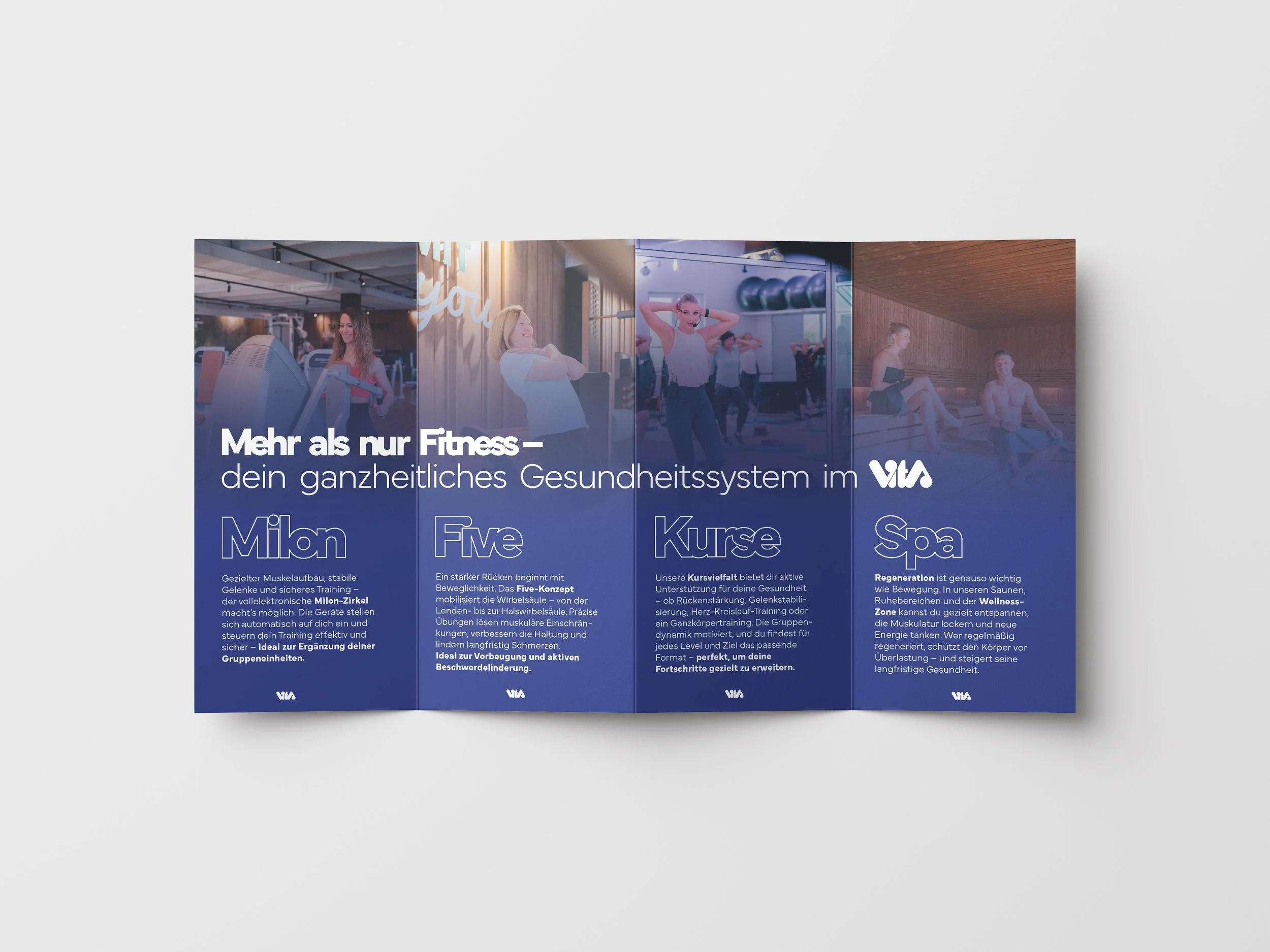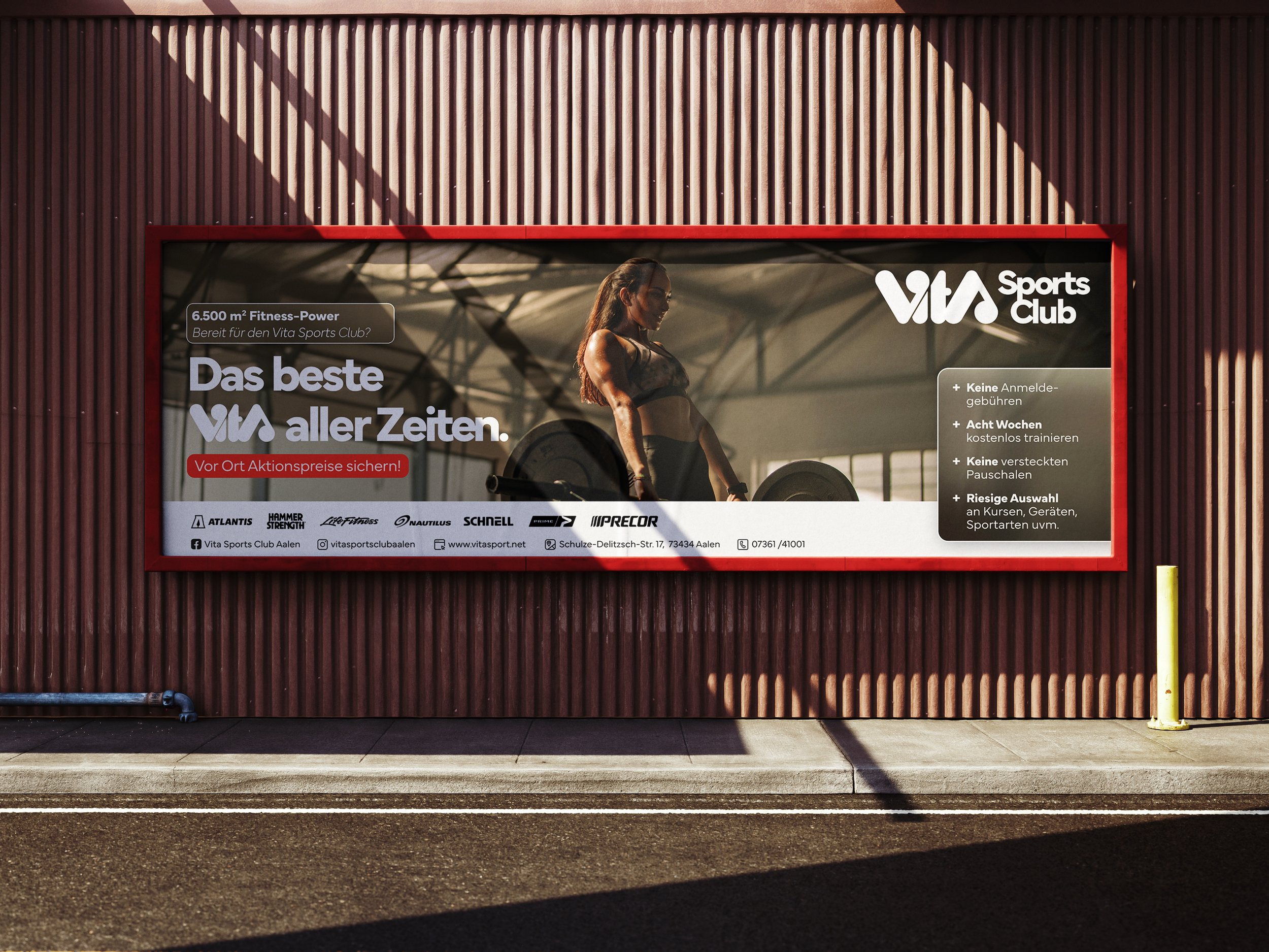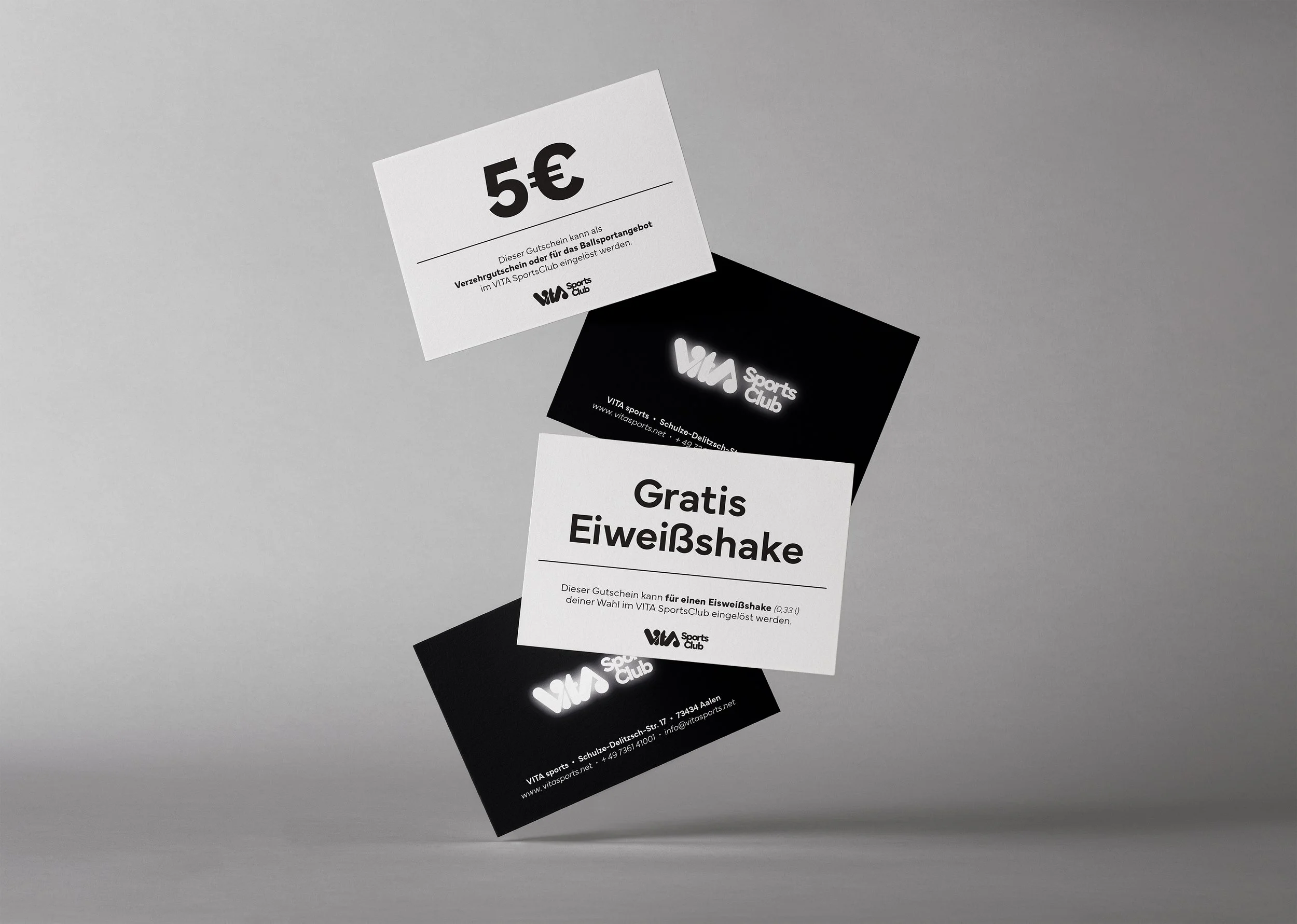 Beim Vita Sports Club in Aalen entstand ein Designkonzept, das moderne Klarheit mit funktionaler Gestaltung verbindet. Die visuelle Sprache zieht sich von hochwertigen Drucksachen wie großen Werbeplakaten über Merchandise-Artikel wie Handtücher und Flaschen bis hin zu digitalen Medien. So wird die Vielfalt und Energie des Studios einheitlich präsentiert und ein Markenauftritt geschaffen, der Motivation und Vertrauen ausstrahlt.